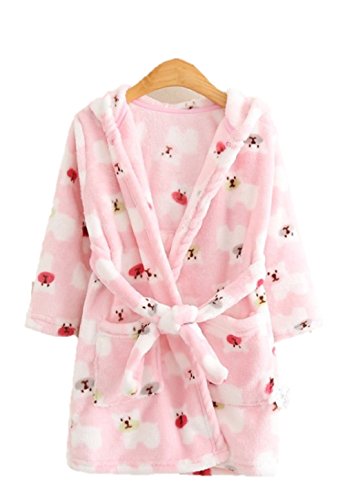 ベビー バスローブ フード付き 湯冷め防止 速乾 保湿 【90cm ( 1~2歳 ) / くま / ピンク 】 アニマル お風呂上り プール 子供 キッズ ガウン ルームウェア (90㎝, ピンク)