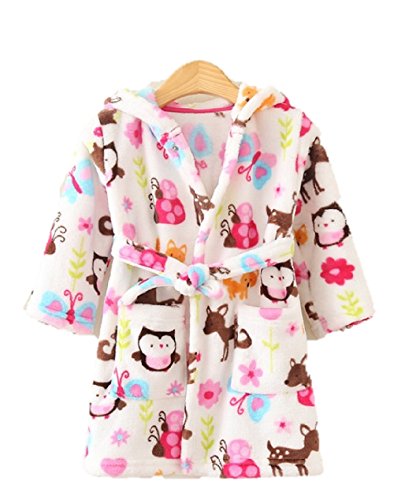 ベビー バスローブ フード付き 湯冷め防止 速乾 保湿 【 90cm( 1~2歳 ) ふくろう 】 アニマル お風呂上り プール 子供 キッズ ガウン ルームウェア (90cm)