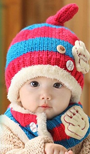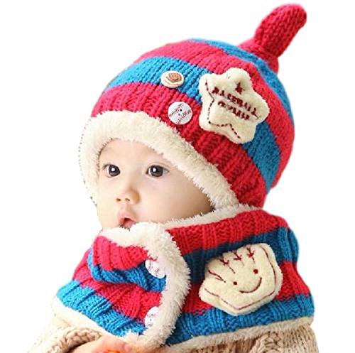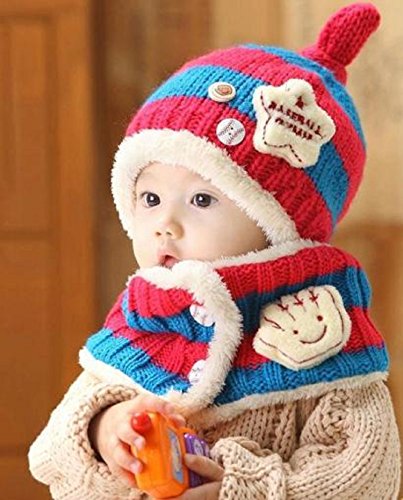 ニット帽 マフラー セット ベビー 赤ちゃん キッズ 子供 用 かわいい 防寒 ニット 帽子 (水色/ピンク)