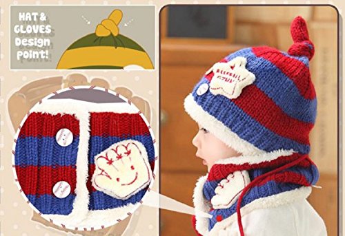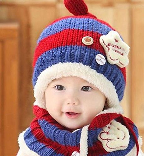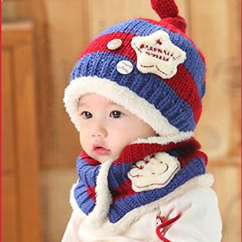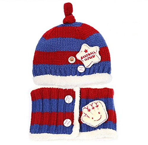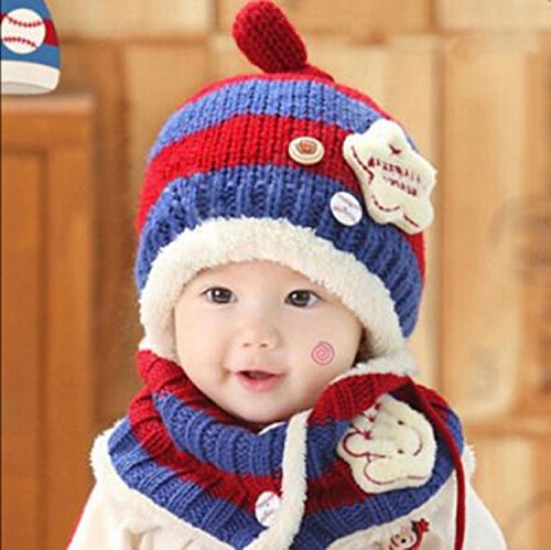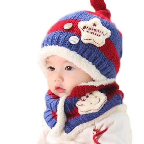 ニット帽 マフラー セット ベビー 赤ちゃん キッズ 子供 用 かわいい 防寒 ニット 帽子 (ブルー/レッド)