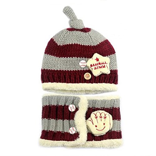 ニット帽 マフラー セット ベビー 赤ちゃん キッズ 子供 用 かわいい 防寒 ニット 帽子 (グレー/ワイン)