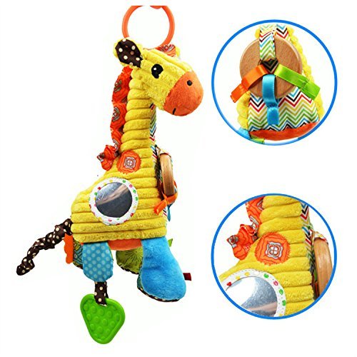 The Giraffe is cute,color rich and bright,feature various,there is small mirror ,Gutta-percha,wood ring,2 Bells.Ring of paper. The best learning &educational development gift for baby