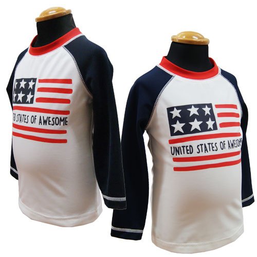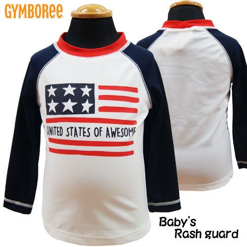【アメリカ買付商品】 ラッシュガード 水着 日焼け止め UVカット ベビー キッズ 子供 90cm GYMBOREE ジンボリー USフラッグが可愛いラッシュガード サイズ:18-24ヶ月(約85~90cm)=身幅26cm ゆき丈32cm 着丈35cm カラー:オフホワイト 素材:ポリエスステル86% SPANDEX14% 洗濯表示:手洗い(※商品付属の洗濯表示をご覧ください。) 輸入国:アメリカ 生産国:中国