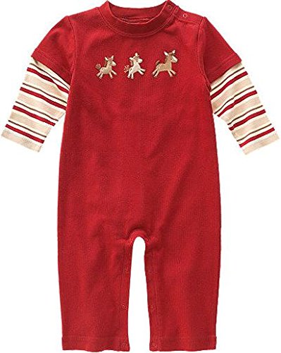 GYMBOREE(ジンボリー)肩ボタン付き 2in1 刺繍 カバーオール 長袖(赤色) (12-18M(1歳-1歳半)) [並行輸入品]