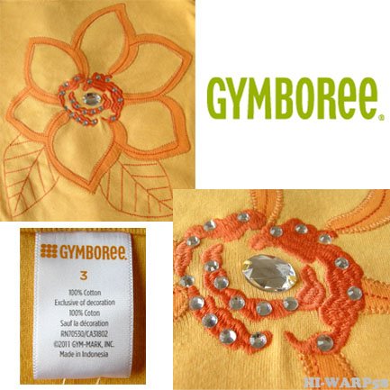 - 明るいカラフルな色使いと品質、デザイン性の高さが人気の『GYMBOREE/ジンボリー』 日本でも有名芸能人が子供に着せている事で人気を集めている子供服のトップブランドです。 ラインストーンが散りばめられたお花の刺繍Tシャツです♪