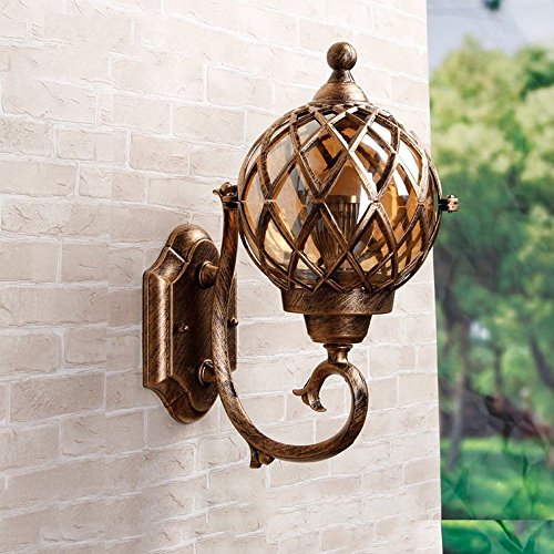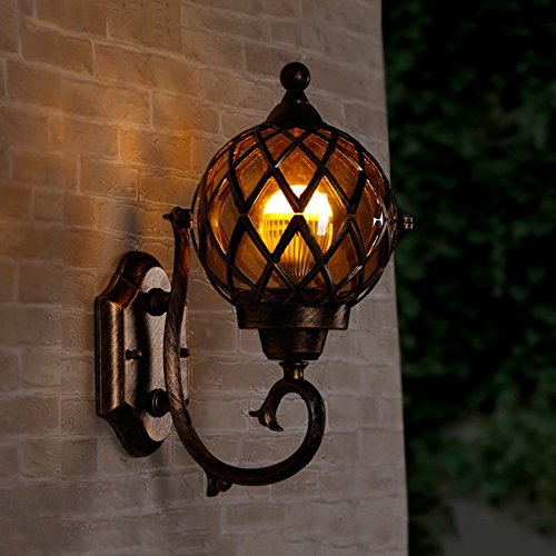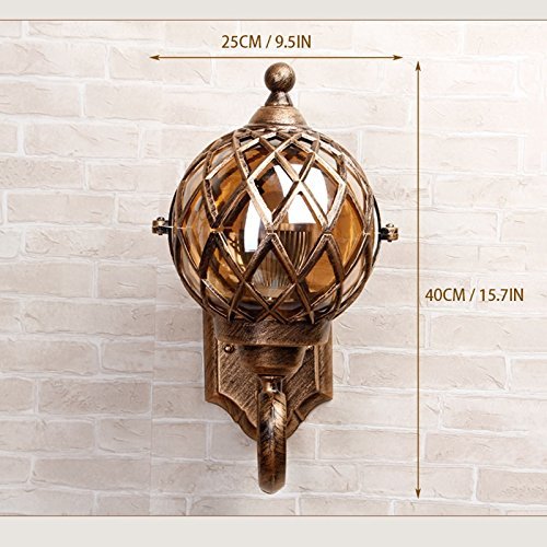 CGJDZMD ウォールスコンス現代IP44ブロンズステンレス鋼メタルウォールランプ&クリアガラスフィッシャーマンズランタンケージ屋外ウォールライト、E27ソケット、(球を含まない)