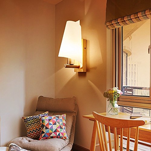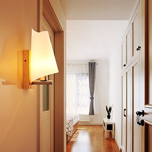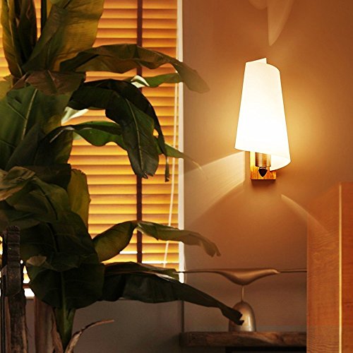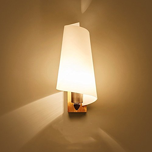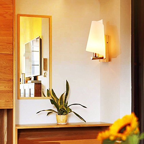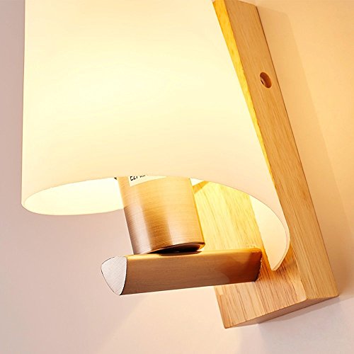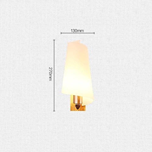 CGJDZMD クリエイティブLEDウォールランプSconceソリッドウッドシンプルなベッドサイドモダンウォールスポットライト白いガラスのランプシェードライトウォールライトリビングルーム、ダイニングルーム、ベッドルームシングルヘッドウォールランタン