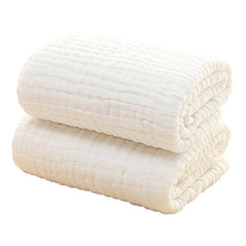 GZ HOUSE ふんわり 授乳ケープ ベビーバスタオル 5重ガーゼ ベビーブランケット ひざかけ ベビーカー/お昼寝用/保育園/幼稚園 出産祝い お冷房対策 オールシーズンに使える 110×110cm (6重ガーゼ ホワイト)