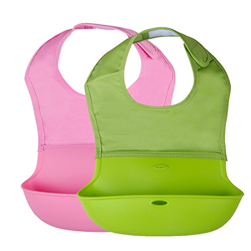 GZ HOUSE 柔らかい ロールアップビブ お食事エプロン よだれかけ お食事用防水ビブ 防水 ポケット付き お食事/離乳食/ 介護の大人 出産祝い プレゼント サイズL (グリーン ピンク)