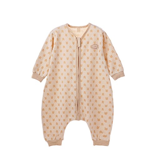 GZ HOUSE 柔らかい オーガニックコットン 春夏用 赤ちゃん用スリーパー 着る布団 寝袋 パジャマ 出産祝い 通気 丸洗い 冷房 プレゼント ファナスー開閉式 寝冷え防止 (100CM, ブラウンB)