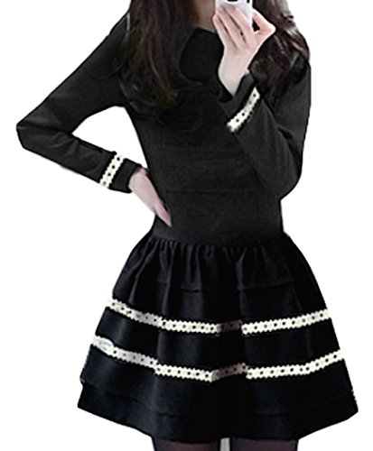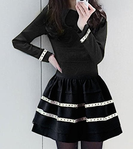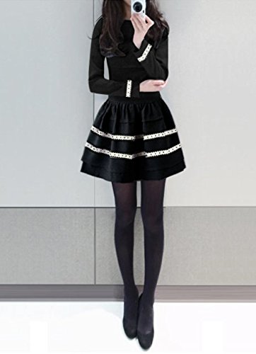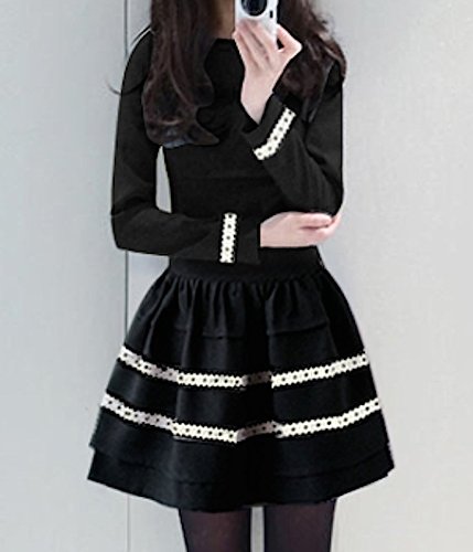 - スカートと袖口のラインはレースでできていて、とてもエレガントな雰囲気です。 伸縮性のある素材できれいにフィット。動きやすく、ウエスト部分をすっきりシェイプに見せるデザインで女性らしいシルエットも美しく映えます。 フレアなスカート部分にレースの2本ラインがおしゃれで可愛らしさいっぱいです。
