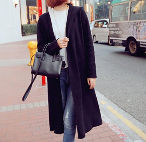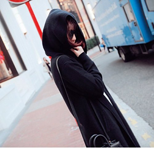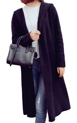 (Galette des Rois) c07Fbk レディース コート ロング ブラック フード カジュアル カーディガン コーディガン 薄手 c07Fbk (フリーサイズ, ブラック)