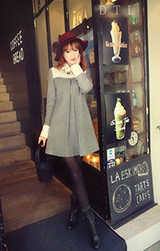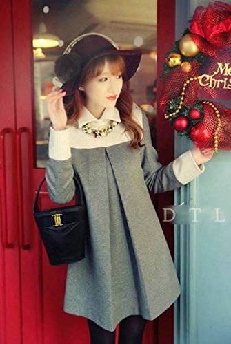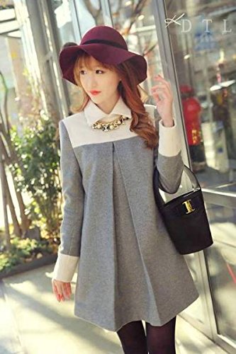 Galette des Rois(ガレット デ ロワ) レディース ワンピース 長袖 aライン 襟付き ひざ上 ミニ フォーマル バイカラー (03M, グレー)