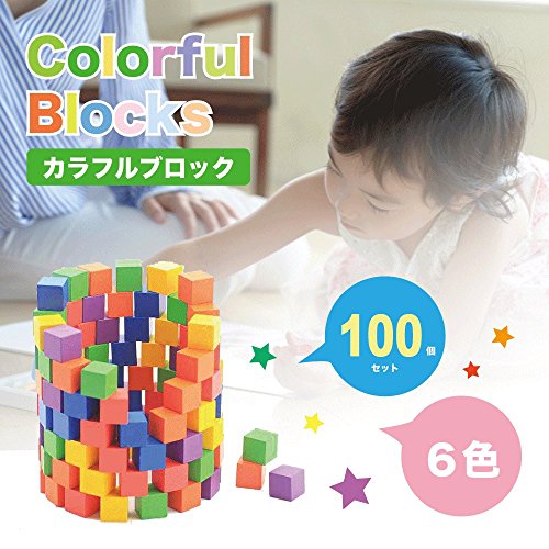- カラフルで小さなキューブ積み木100個セット(木製)