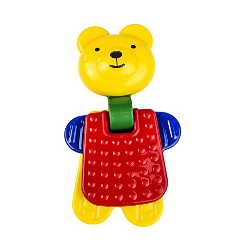 With the growth of babies, It is very important to make the baby learn the activities of biting and chewing. Babies love to bite on anything that they lay their hands on and this shall not be discouraged as chewing on different materials and shapes stimulates the periodontal membrane under the teeth, and in so doing, babies learn to control the force of their bite. To ensure that your child enjoys the blissful days of child and yet inculcate healthy habits, Ambi Toys brings to you the exclusive Ted Triple Teether. Each of the three pieces of the teether has a different shape, color and texture to help baby discover while teething.