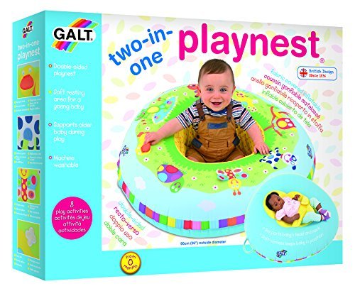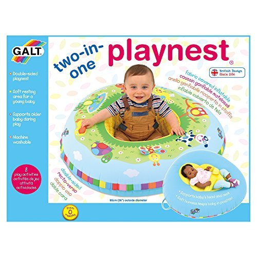 The Two-in-One Playnest from Galt is a play ring that grows with your baby - one side is perfect you're your littlest ones and the reverse side for when they're a little older and a little more adventurous. A velour nesting area with a soft harness supports your baby's head and neck, and a gentle strap keeps them in position. The reverse side is a fabric-covered inflatable ring that is a safe space for exploration and filled with fun activities. There are eight different multi-sensory features on the ring, designed to keep your baby engaged.