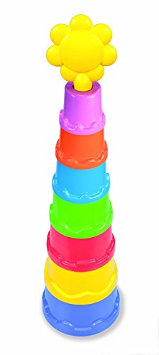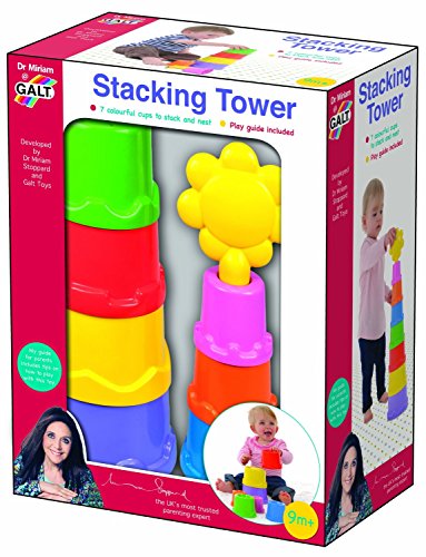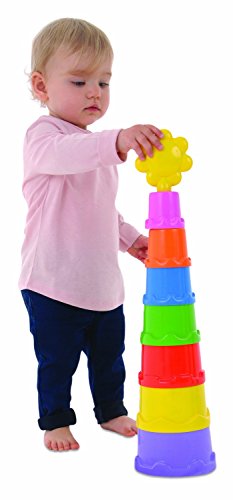 Plastic 7-Cup Stacking Tower Toy Set with Flower and Play Guide for Dexterity and Hand-Eye Coordination. Stacking Tower by Galt brings fun and imagination into your home. This set of 7 colorful cups to stack and nest has a fun flower to place on top. Encourages manual exterity and hand-eye coordination as the cups are placed on top of and inside each other. Learn about big dexterity and hand-eye coordination as the cups are placed on top of and inside each other. Learn about big and small, top and bottom and the colors of the cups. May also be used for sand and water play. Recommended Age: 9 M+' Materials: Plastic Dimensions: 11'L x 9'W x 5'H Weight: 1.5 lbs