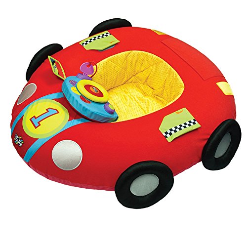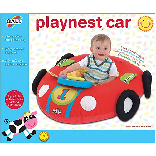 浮き輪のようにすっぽり座れるたっぷりサイズ。ハンドルを握ったりカギを回したり、ドライバー気分! 浮き輪方のチューブをふくらませて使用するプレイネスト・レーシングカーは、赤ちゃんをしっかり包み込む、楽しい仕掛けがたくさん詰まった車型のプレイネストです。様々な触り心地の素材、音が鳴るボタン、パリパリ音、鏡などからたくさんのあそびが生まれ、赤ちゃんの想像力と五感を刺激します。本物の車のように、カギを入れるとエンジン音が鳴り、クラクション音やラジオから流れる音楽などにより、ごっこ遊びも楽しめます。 ※約9ヶ月頃~4才頃までの幅広い年齢のお子さまにお使いいただけます。