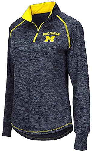 Ladies Michigan WolverinesヘザーブルービクラムQuarter Zip合成シャツ L ブルー