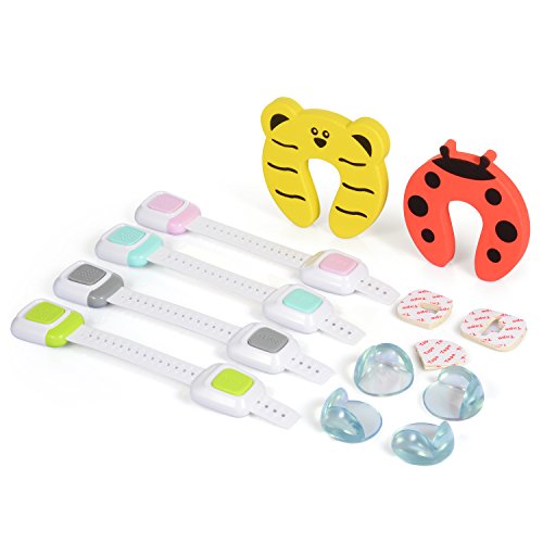 子安全ロック、ganoteck調節可能な子安全キャビネットロックwith 4赤ちゃんの校正コーナーガード、2指ピンチガードキャビネット、引き出し、テーブルとドア、10ピース