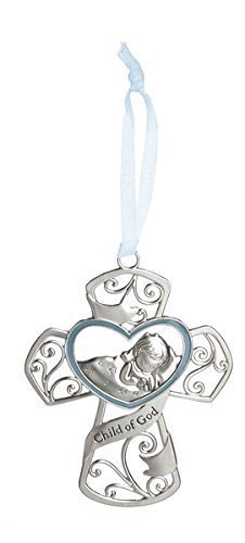 Ganz 4'' Ornate Baby Crib Cross Decor with Ribbon for Hanging (Child of God - Blue)