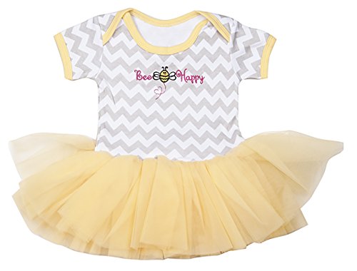 かわいらしいチュチュのおむつ、シャツからガンツはグレー山形のストライプ&イエローの襟とアクセントになっています。" Bee Happy "は前面に刺繍、かわいいBEE飾り翼にバックすることはできません。スリップのネックライン股スナップでおむつの変更が簡単です。100コットンシャツ。ソフトポリエステルチュールチュチュ。フィット3 – 6か月です。