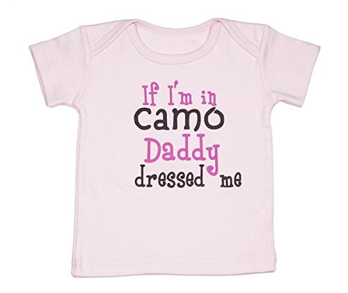 ガールズcamo- t-shirt-場合あなたがカモ、Daddy Dressed ME。綿100 %のニット。サイズ胸囲10の幅で、バック: 12 1 / 4 inの長さ、フィット6 – 12ヶ月カラー:ブラウン、ピンク