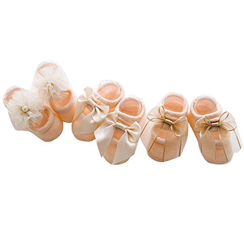 【3足セット】出産祝い かわいい ベビーソックス 新生児 赤ちゃん 靴下 滑り止め付き 可愛い 女の子 キッズ 柔らかいXS(0~12ヶ月) S(12ヶ月~36ヶ月)(ベージュ)Gaorui(ガオルイ)