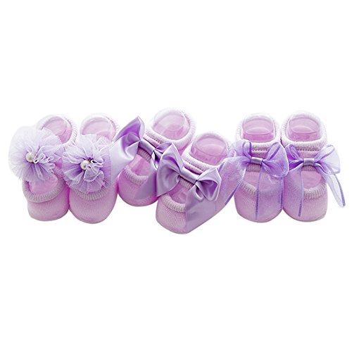 【3足セット】出産祝い かわいい ベビーソックス 新生児 赤ちゃん 靴下 滑り止め付き 可愛い 女の子 キッズ 柔らかいXS(0~12ヶ月) S(12ヶ月~36ヶ月)(パープル)Gaorui(ガオルイ)