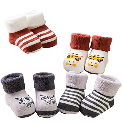 【4足セット】出産お祝い ベビーソックス 新生児 赤ちゃん キッズファッション 綿 可愛い柄 暖かい 靴下 冬 厚手 柔らかい フルカラー 女の子 男の子 キッズ 子供 0-12ヶ月 1-3歳 3-5歳 Gaorui(ガオルイ)