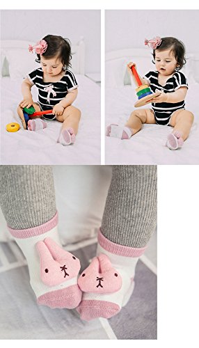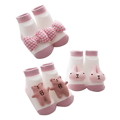 【3足セット】出産祝い ベビーソックス キッズ アニマル 柄 靴下 新生児 赤ちゃん 滑り止め付き 女の子 男の子 お出かけ (ピンク)S(0~12ヶ月) Gaorui(ガオルイ)