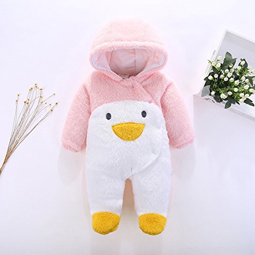 ベビーカバーオール 冬 新生児 赤ちゃん ベビー服 ロンパース 防寒着 着ぐるみ 前開き フード付き 出産祝い ふわふわ 長袖 男の子 女の子 (ペンギン ピンク)0-3ヶ月 3-6ヶ月 6-9ヶ月 9-12ヶ月Gaorui(ガオルイ)