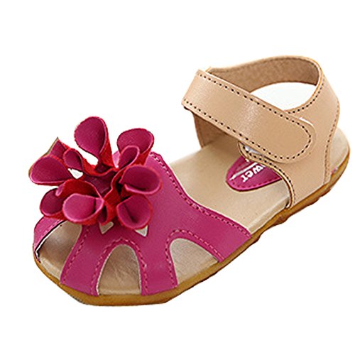 Gaorui(ガオルイ) キッズシューズ ガールズフラットシューズ 可愛い 花のデザイン 赤ちゃん 履き心地 柔らか レザー ローズ パープル ピンク 13~18cm