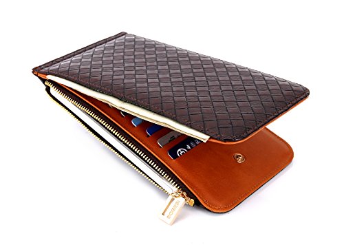 Gaosa 人気 PUレザー長財布 薄型 ウォレット 二つ折り財布 大容量 多機能 収納 iPhoneも入る 小銭入れ カード入れ 父の日 母の日 ギフト プレゼント (褐色)