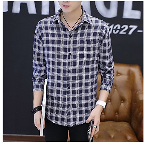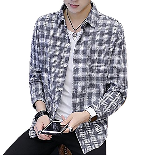 Gaosa ファション メンズ トップス 長袖 チェック柄 シャツ シンプル カジュアル 大きいサイズ (L, グレー)