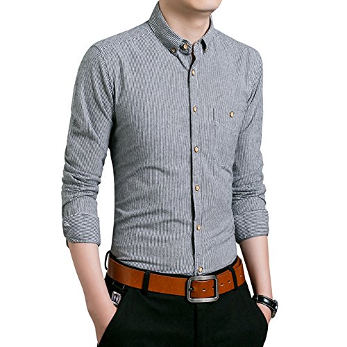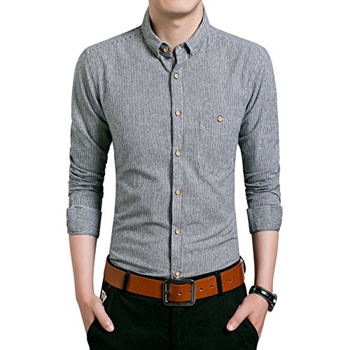 Gaosa メンズ 襟付き シャツ 長袖 ワイシャツ トップス スリム ロングスリーブ シャツ ビジネス カジュアル シンプル (グレー, XL)