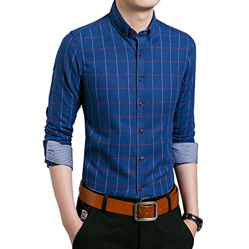 Gaosa メンズ お洒落 チェック柄 ワイシャツ ボタンダウン 長袖 折り襟 着回し カジュアル ビジネス スリム ドレスシャツ 父の日ギフト (M, ブルー)
