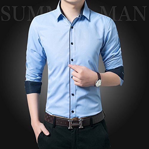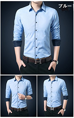 Gaosa ワイシャツ メンズ 襟高 長袖Yシャツ 無地 形態安定 おしゃれ ビジネス ビジネス ドレス スリム (40, ブルー)