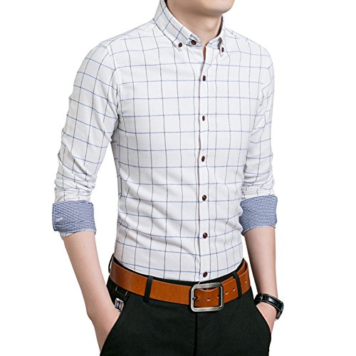 Gaosa メンズ お洒落 チェック柄 ワイシャツ ボタンダウン 長袖 折り襟 着回し カジュアル ビジネス スリム ドレスシャツ 父の日ギフト (XL, 白)