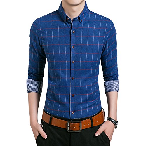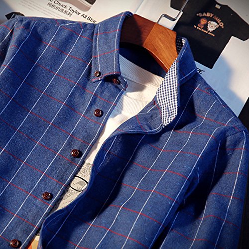 Gaosa メンズ お洒落 チェック柄 ワイシャツ ボタンダウン 長袖 折り襟 着回し カジュアル ビジネス スリム ドレスシャツ 父の日ギフト (4XL, ブルー)