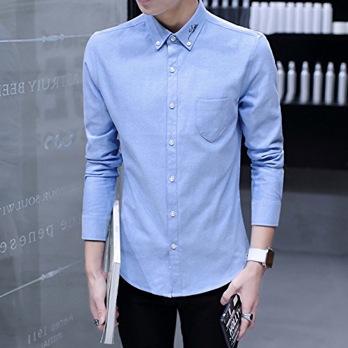Gaosa ワイシャツ メンズ 素晴らしい 純色 長袖 ボタンアップ シャツ Yシャツ スリム カジュアル 父の日ギフト (4XL, ブルー)