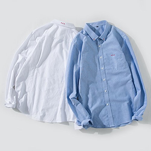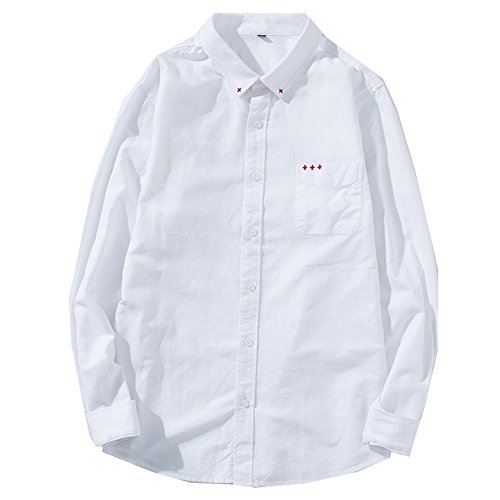 Gaosa メンズ ファッション 長袖 無地 カジュアル ワイシャツ 襟付き おしゃれ 大きいサイズ (L, 白)