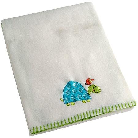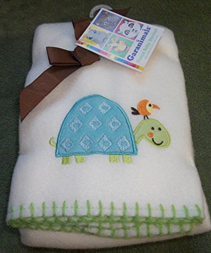 Garanimals so Cute White Baby Fleece Blanket with Embroidered Turtle Design by Garanimals