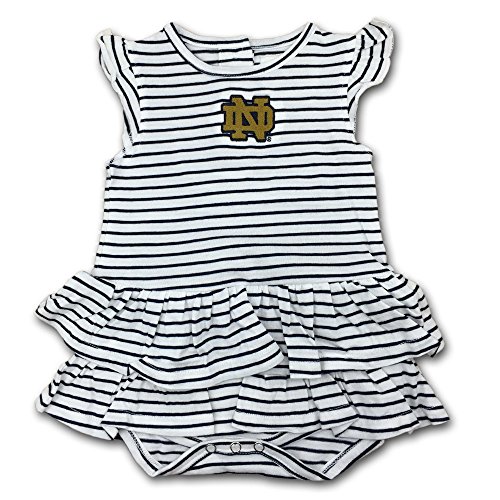 当社のノートルダムストライプNフリルスカートロンパースは、お子様に最適です。試合の日は、再生または[ 1日公園。スウィートロンパースは公式のノートルダムロゴ前面に。