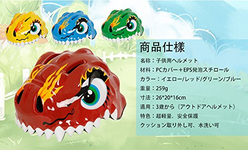 Garmine ヘルメット 子供用 自転車 可愛い恐竜型 超軽量 調整可能 幼児 キッズ 小学生 スケートボードなど適用 スポーツヘルメット (レッド)