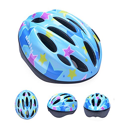 子供 ヘルメット 軽量 サイクリング 自転車 登山 スポーツ キッズ 安全 おしゃれ 一体成型 (ブルー・星)