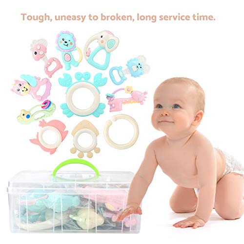 Baby Teether ラトルセット 乳児 握り手つかみ おもちゃ BPAフリー 8個 収納ボックス付き 赤ちゃん 新生児 男の子 女の子