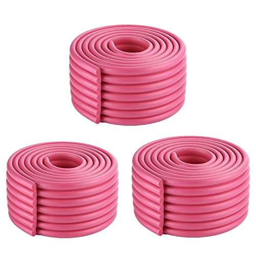 GeeSo ベビーガード 波型コーナークッション コーナーパッド けが防止 厚手 テープ付き2m 3本セット (W波型- 3本セット, Rose)