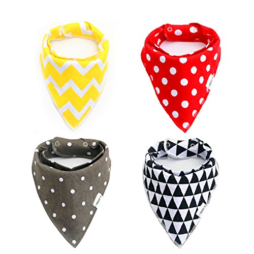 GeeSo ベビー スタイ ビブ よだれかけ 綿 コットン100% 柔らかい 2層タイプ スナップ 三角 バンダナ型 4枚セット (Hセット)