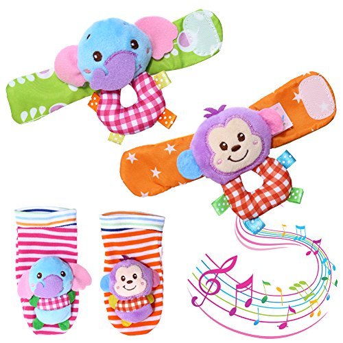 geefiaベビー手首ラトルと足Rattles Finder Socks Monkey and Elephant Developmentalソフトおもちゃセット幼児用動物Rattle幼児シャワーギフト4点